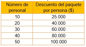 Las magnitudes de la siguiente tabla están directamente correlacionadas, ya que a medida que aumenta el número de personas el costo por paquetes turístico aumenta.
