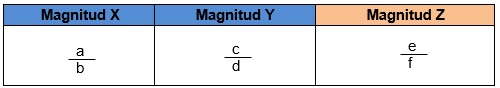 Se puede decir que las magnitudes x, y, z se pueden relacionar con las siguientes razones (z es la magnitud que contiene el dato desconocido o variable):