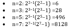 Por definición, los números perfectos resulta ser igual a la suma de todos los divisores propios que esta posea. Euclides estudió estos resultados y encontró los primeros 4 primeros números perfectos que tenían una propiedad inusual. Encontró la siguiente formula por inducción básica que: