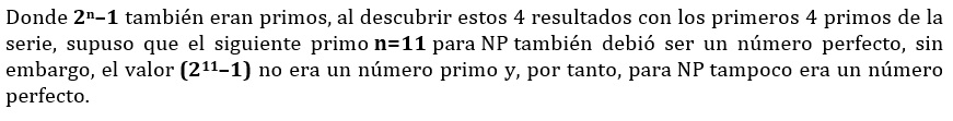 Pero los matemáticos de épocas antiguas dejaron por sentado que todos los números primos para NP tenían que ser números perfectos, esta afirmación sin demostración se le llama conjetura.