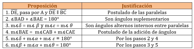 3. Se relaciona la hipótesis con las definiciones, postulados y teoremas demostrados anteriormente, para establecer una sucesión lógica de proposiciones que permitan comprobar la validez de la tesis. Generalmente este paso de la demostración se presenta en dos columnas.