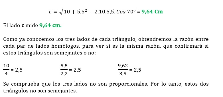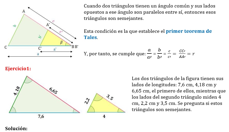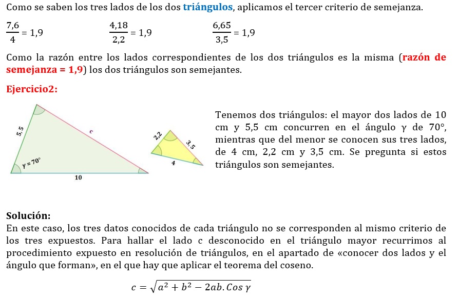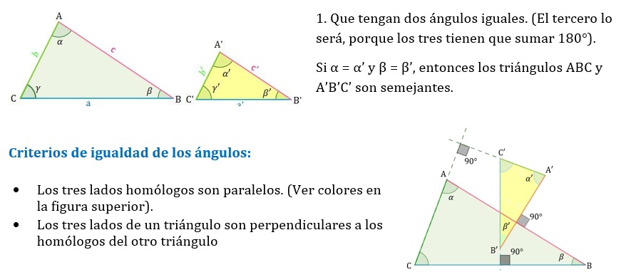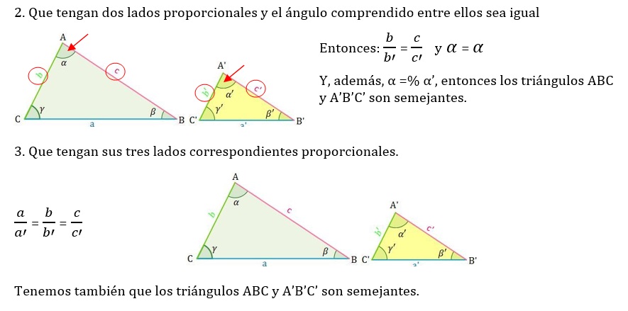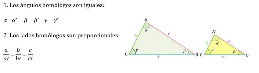 En los triángulos semejantes se cumplen las condiciones siguientes: