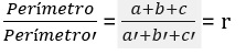 Se cumple que la razón de los perímetros de dos triángulos semejantes es también la razón de semejanza y que la razón de sus áreas es el cuadrado de la razón de semejanza: