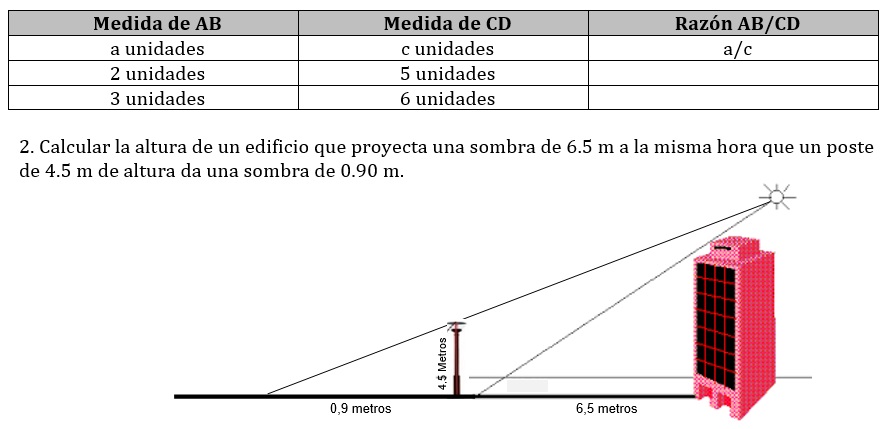 1. En este ejercicio tienes que calcular la razón de los segmentos AB y CD, en los siguientes casos: